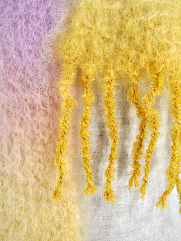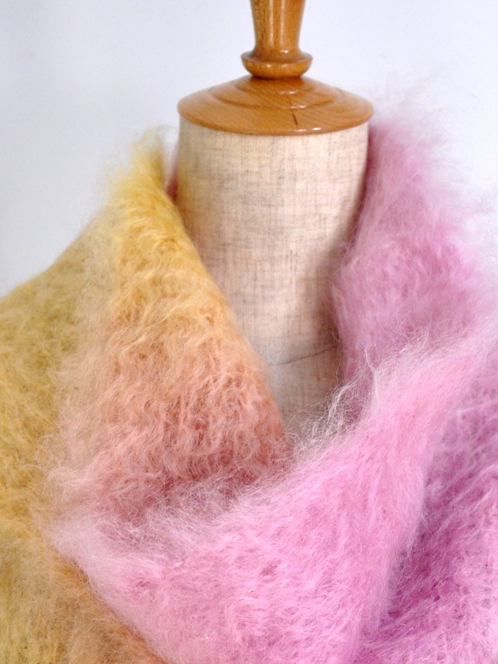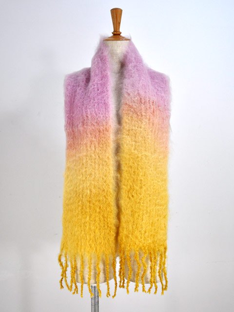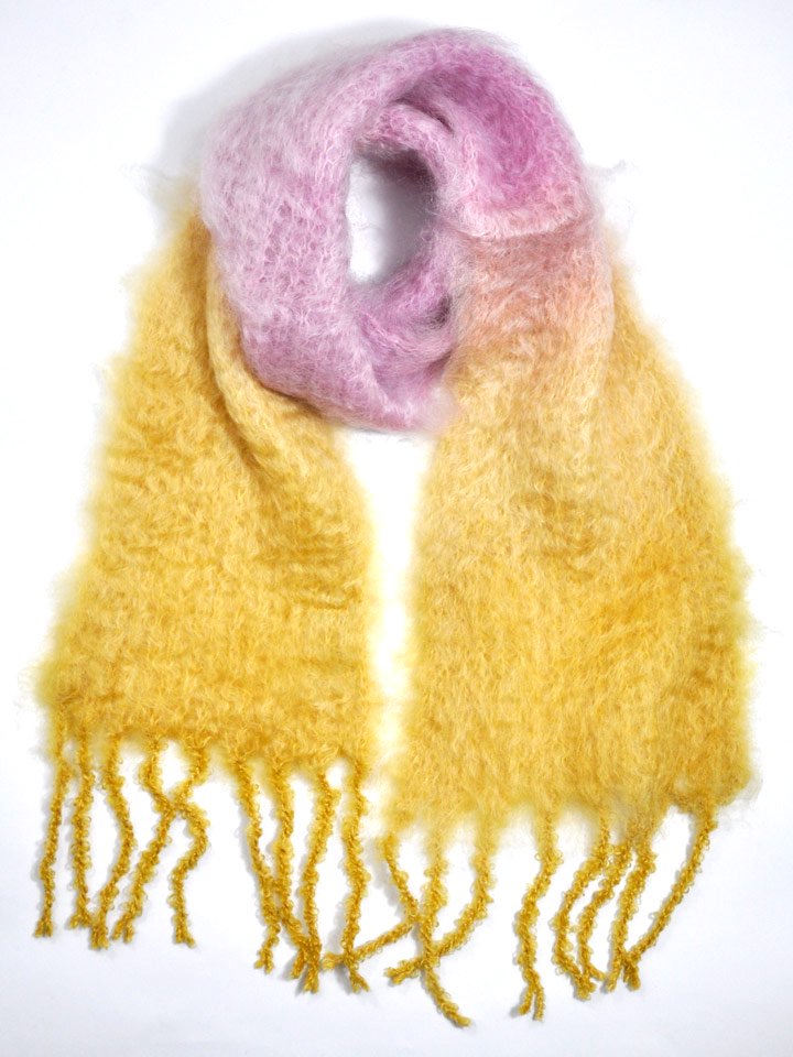 南アフリカのモヘアのマフラー・グラデーション・ピンク&カナリヤ
