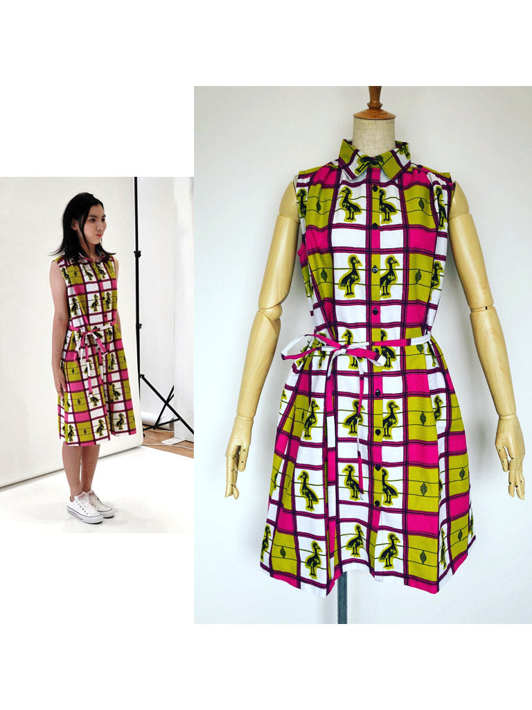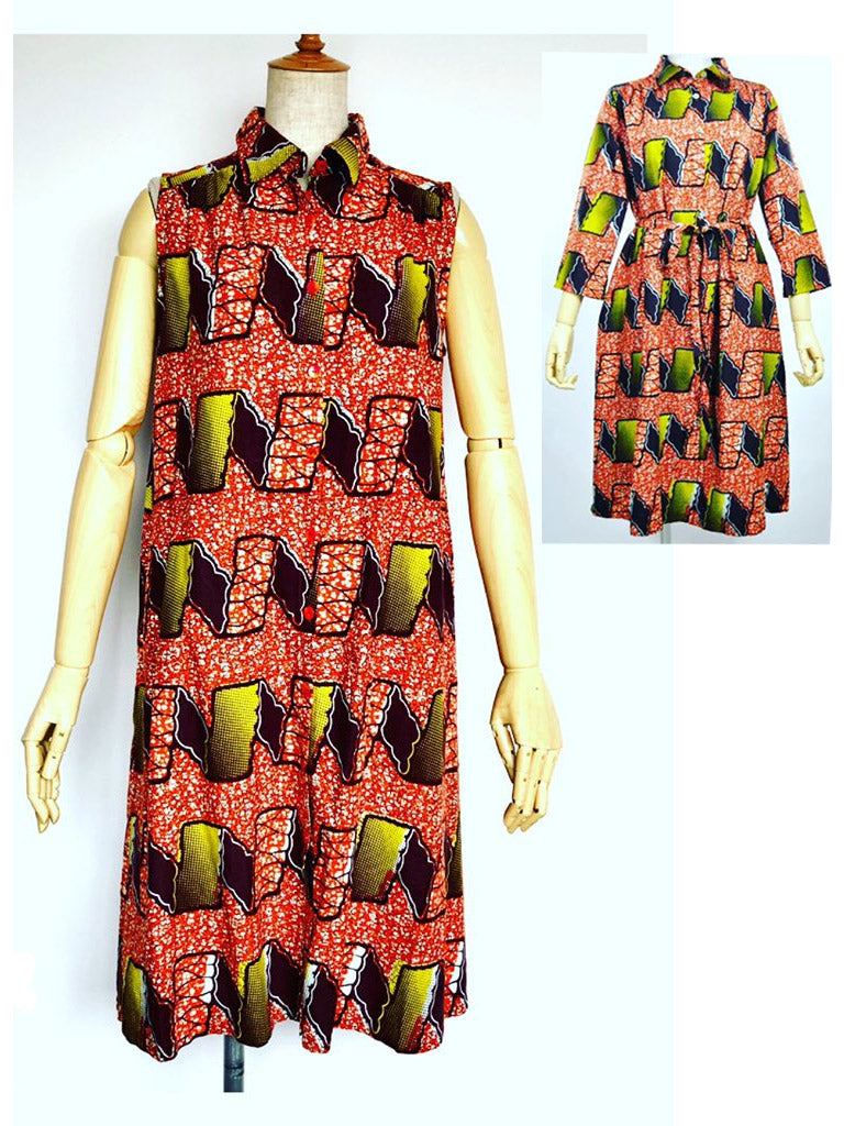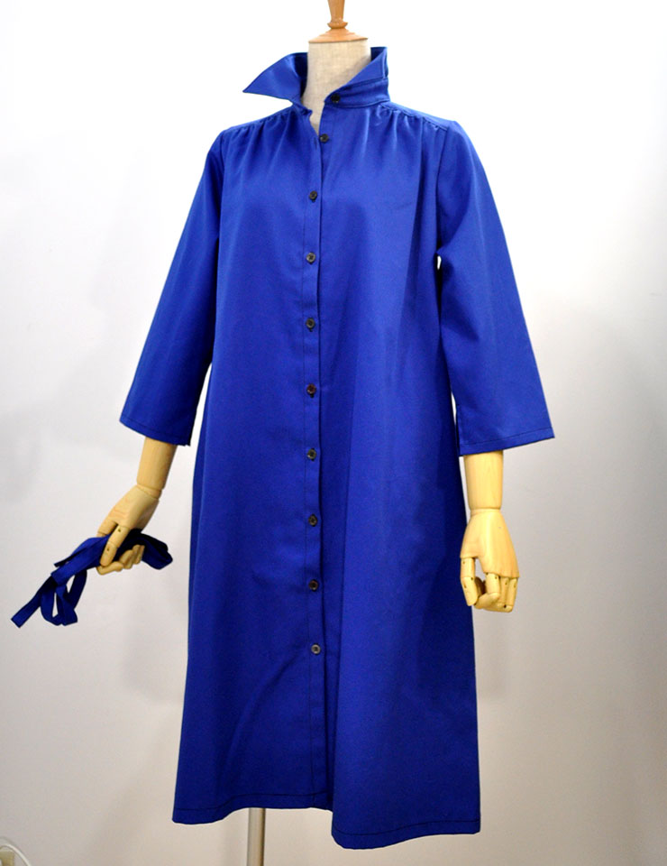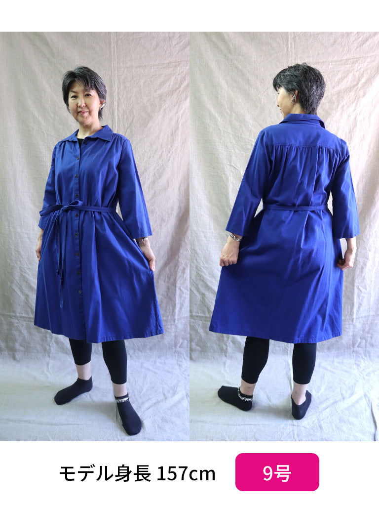 共布の細いベルトもお付けします。ウエストをしめたり、そのままふわっと着たり、前ボタンを開けてコートのように羽織ったりと、様々に楽しめます。