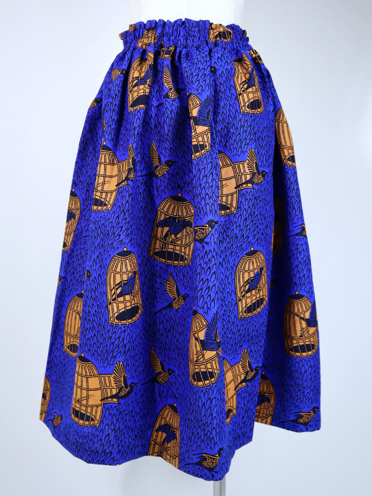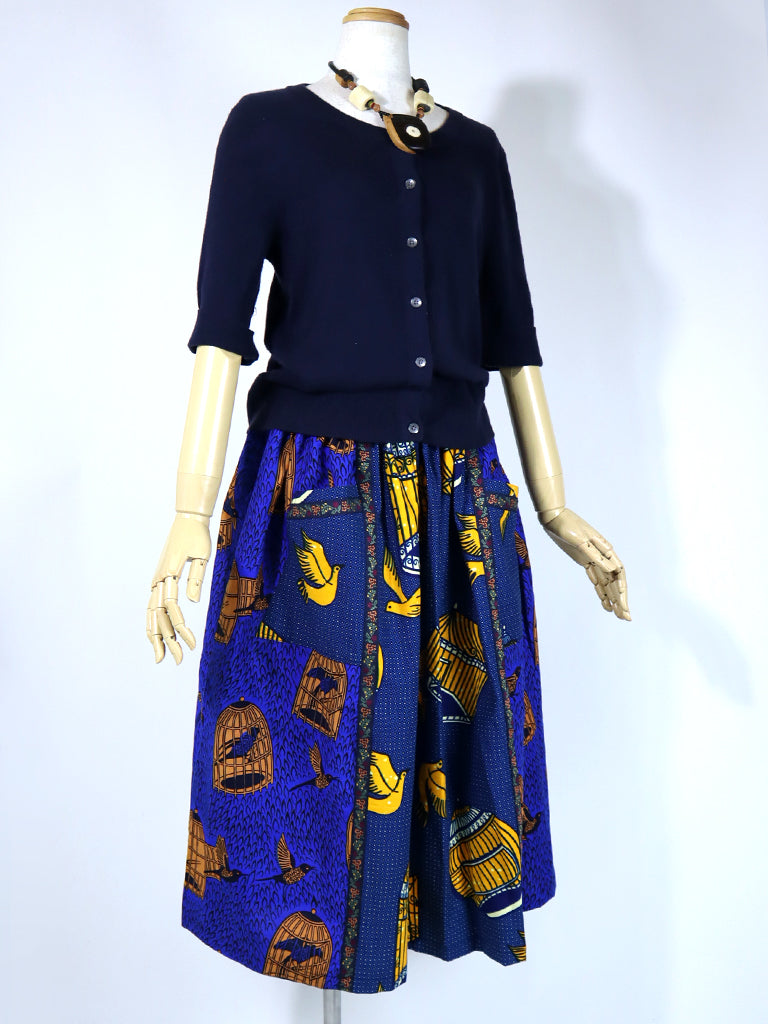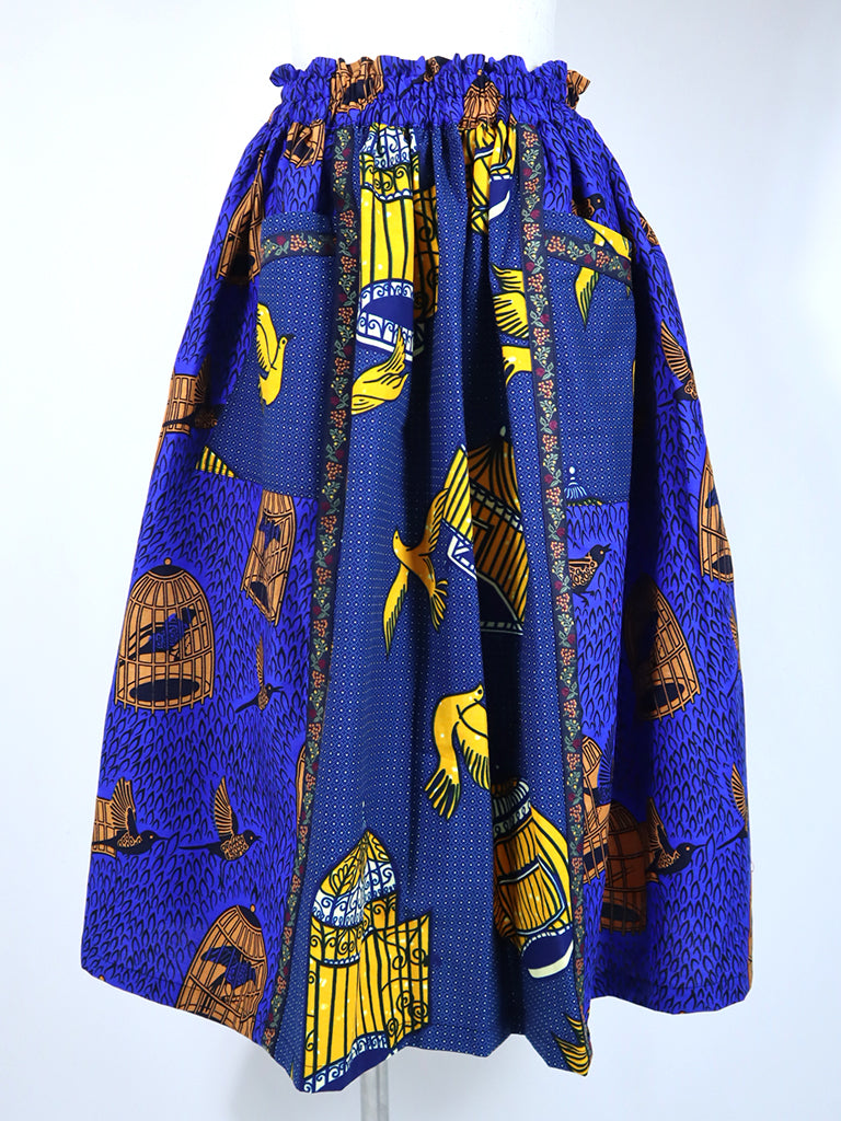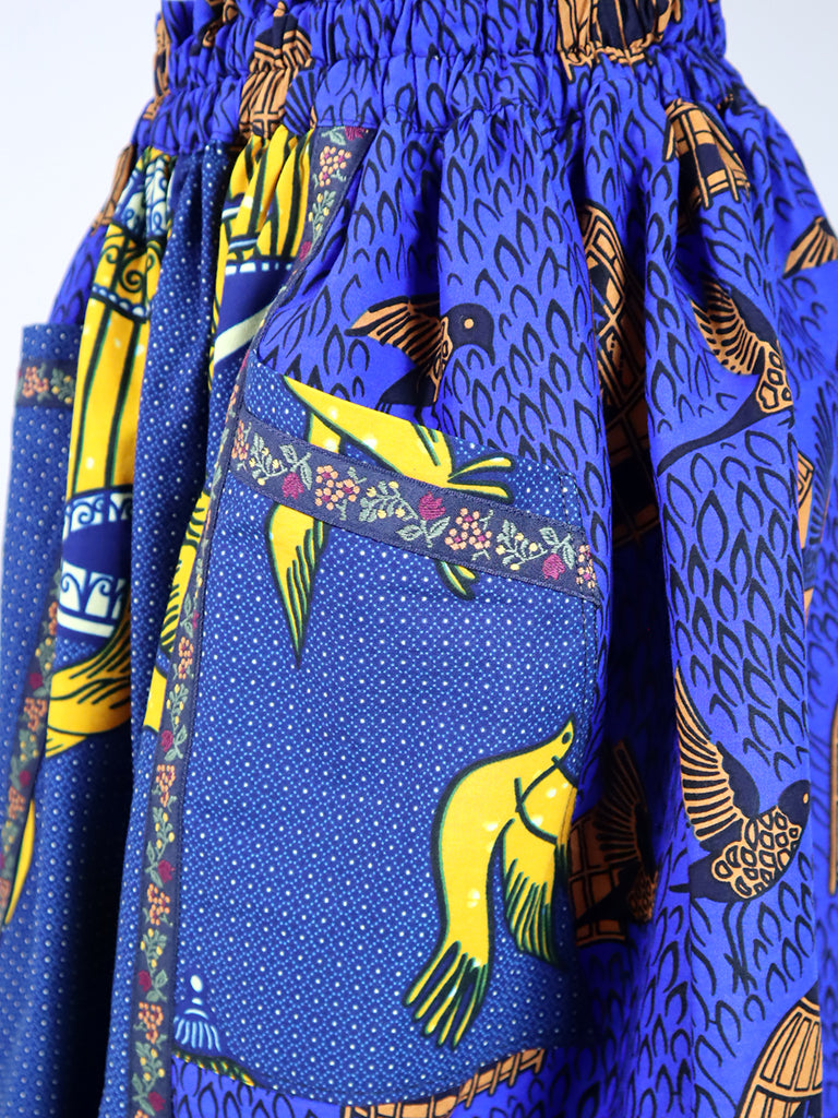 ポケット付きフォークロア・ロングスカート・フリーバード×ブルー