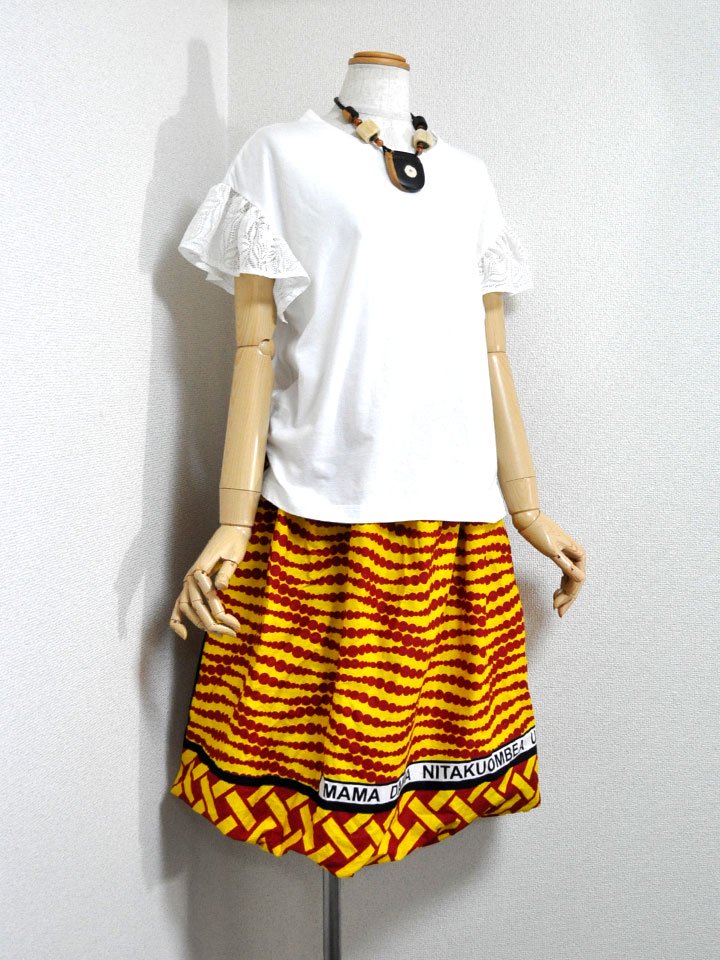 カンガのバルーンスカート・イエロー×レッドドットライン