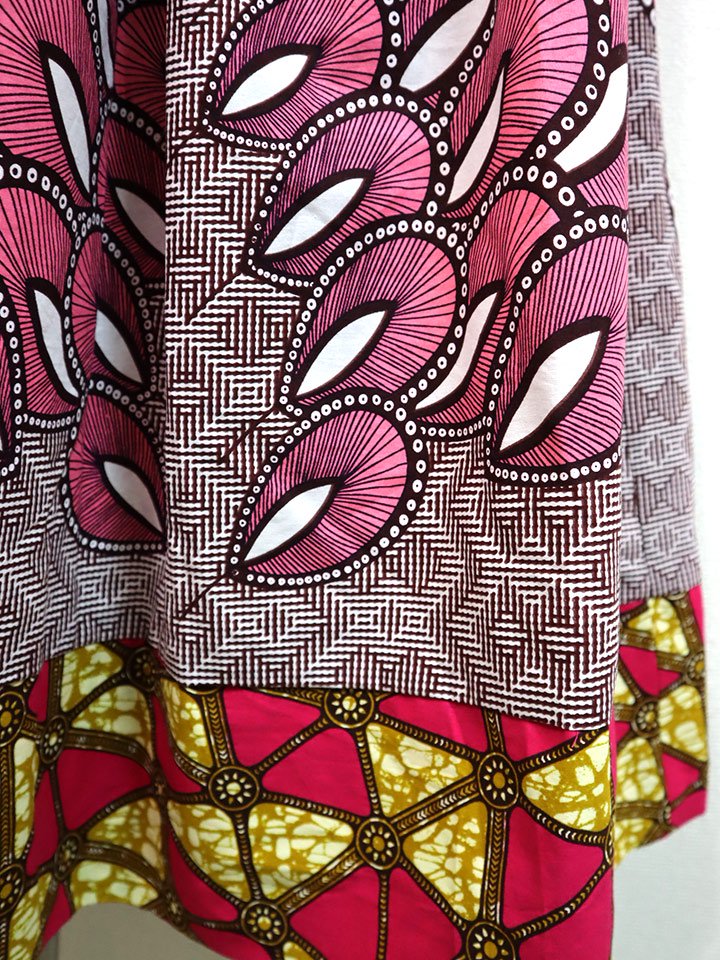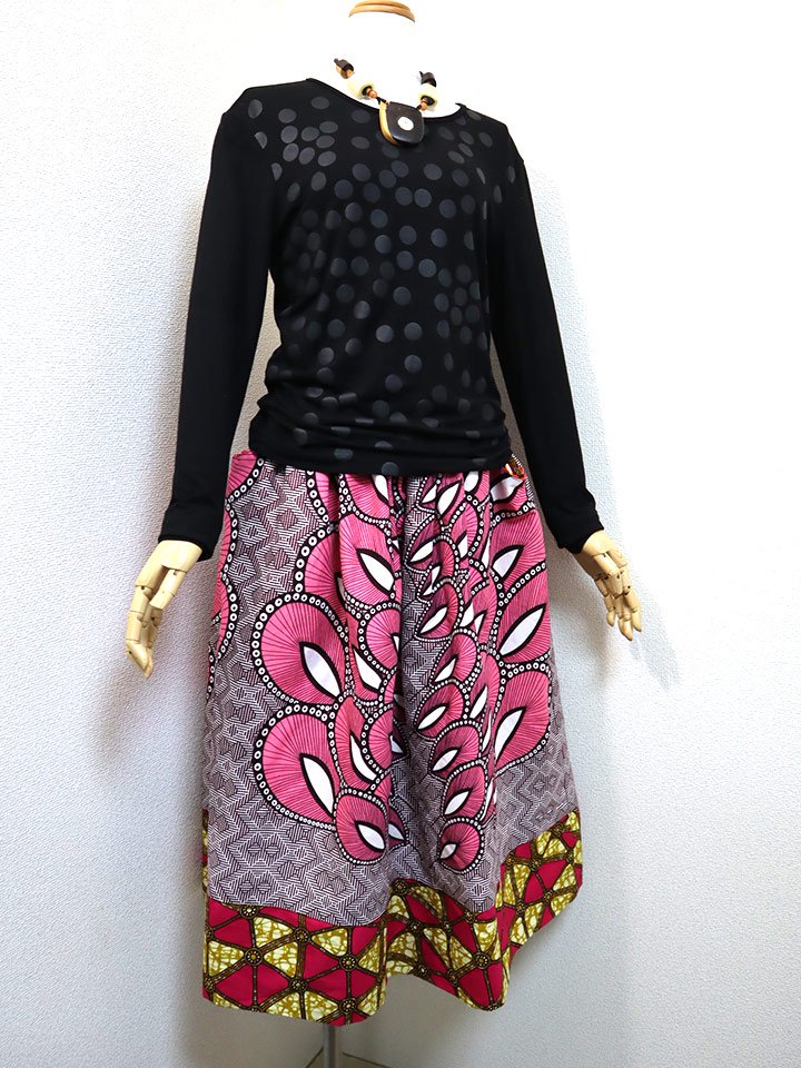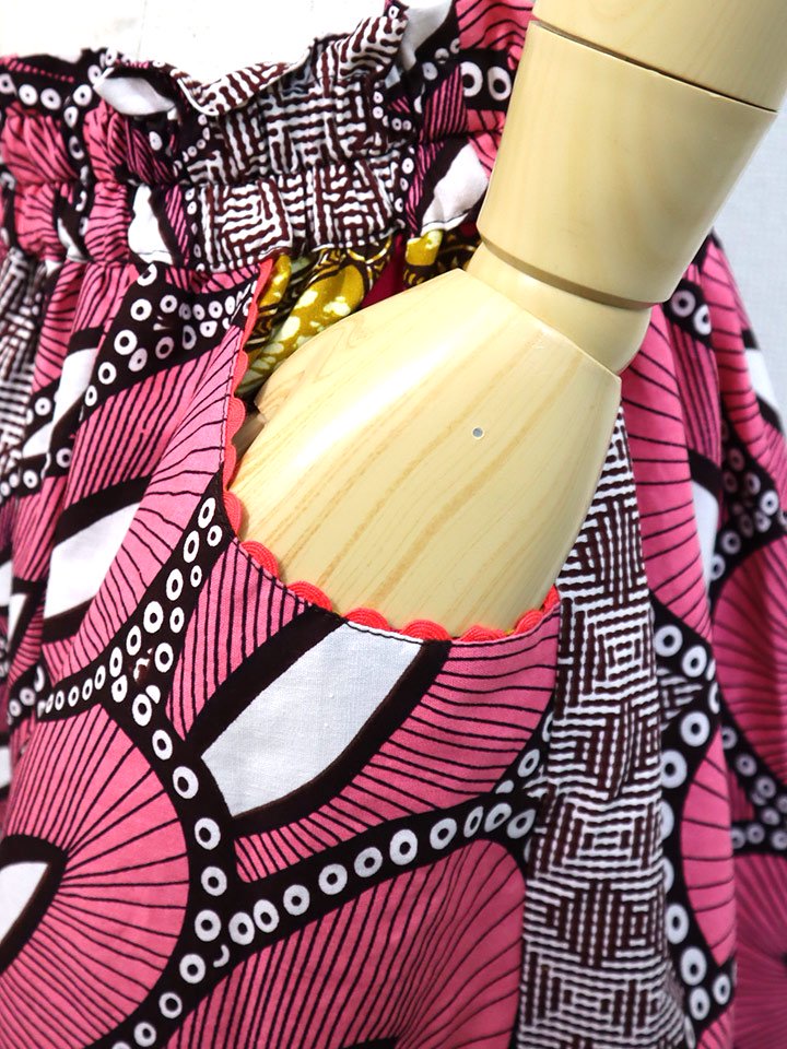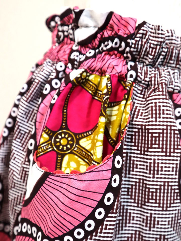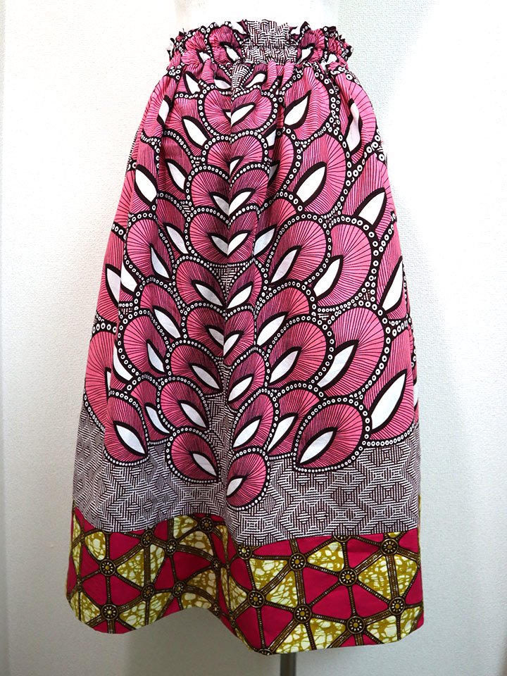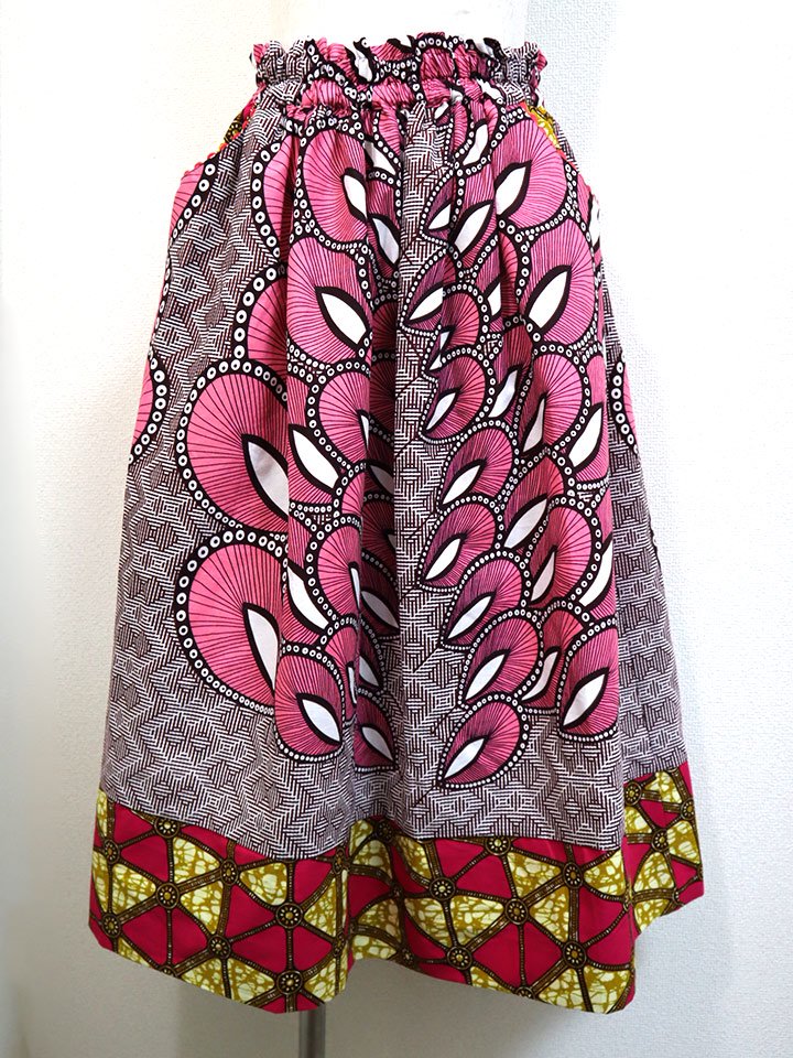 ポケット付きギャザー切り替えスカート・ピンクフェザー×トライアングル