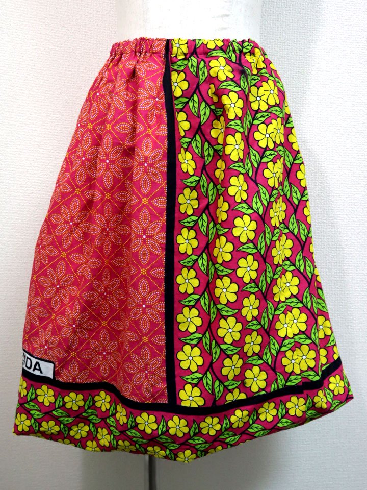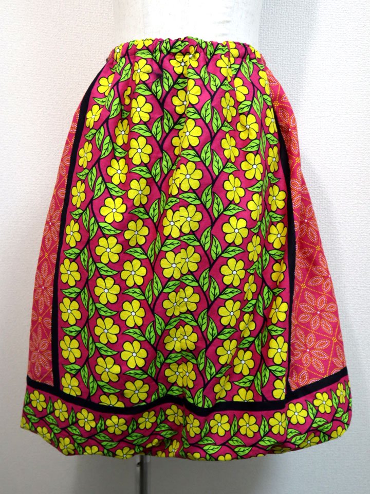 カンガのバルーンスカート・ピンク×イエローフラワー