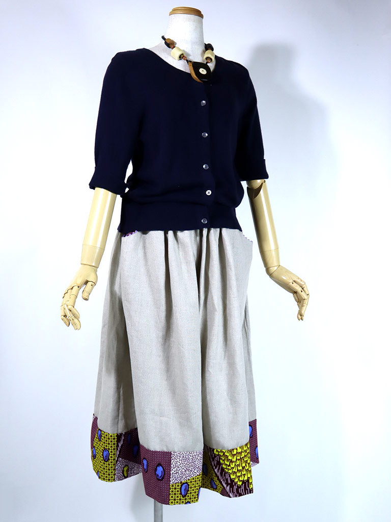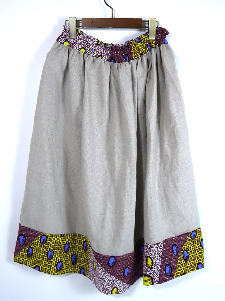 リネンのポケット付きギャザー切り替えスカート・ブルーエッグ(リネン色ナチュラル)