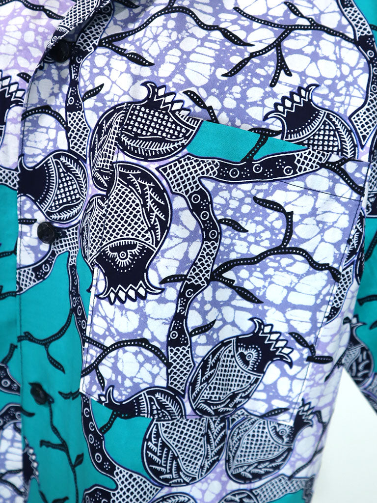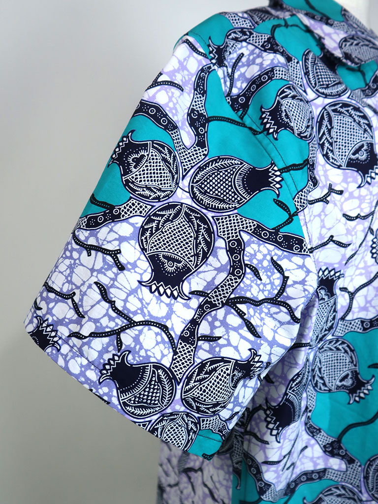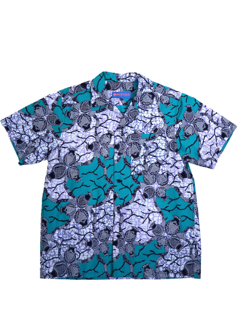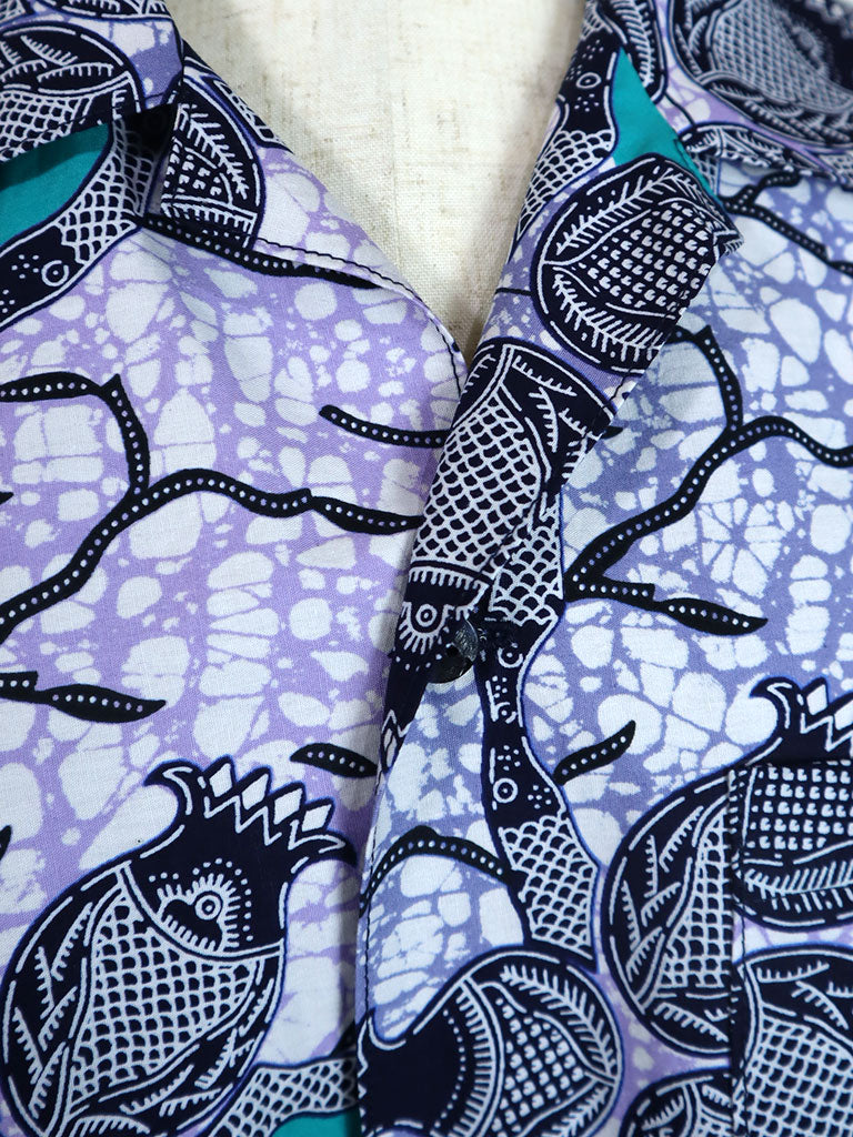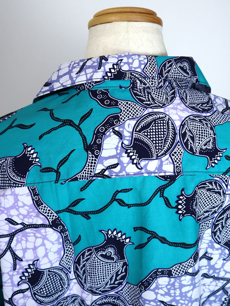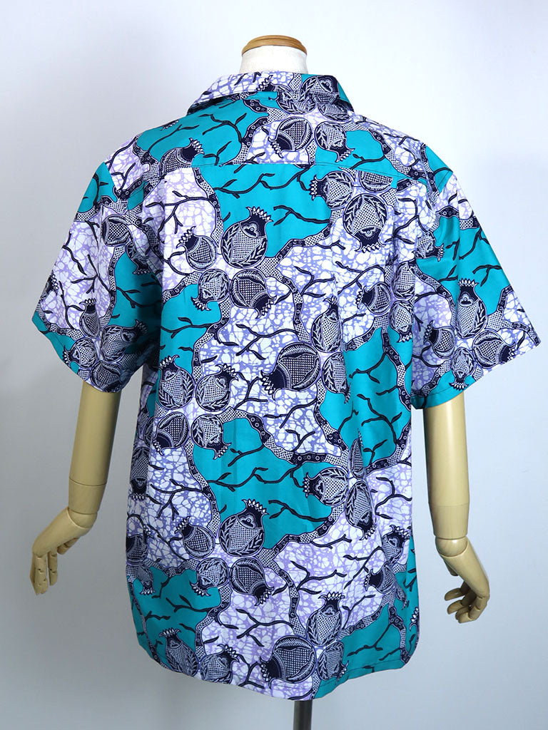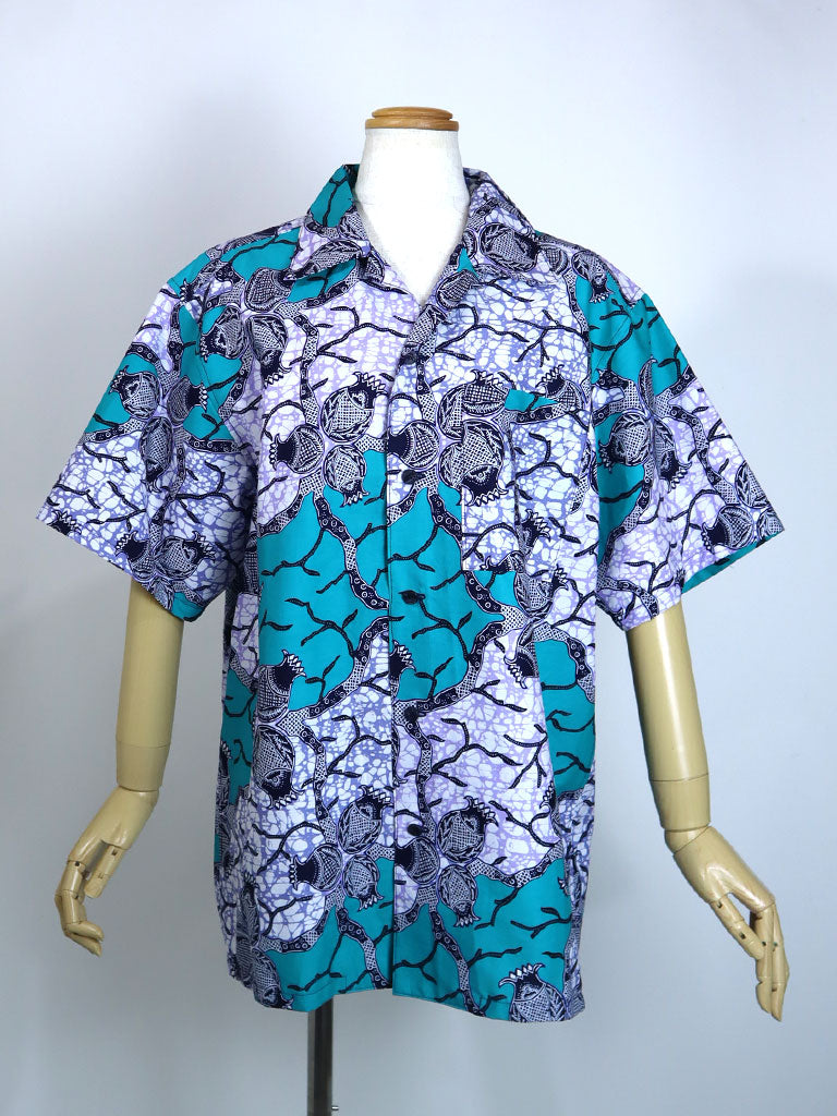 西アフリカのプリントで作ったアロハ風半袖シャツです。
