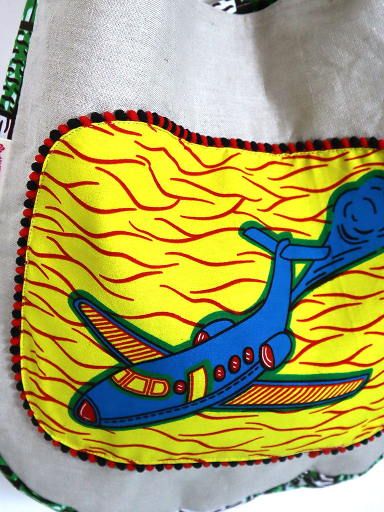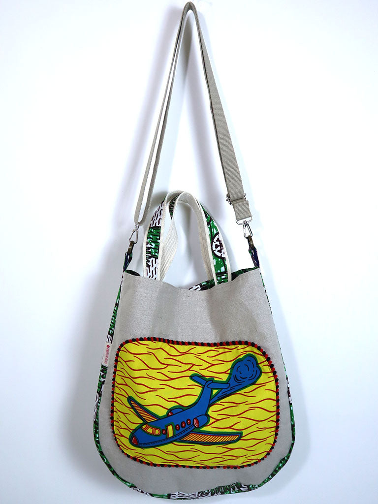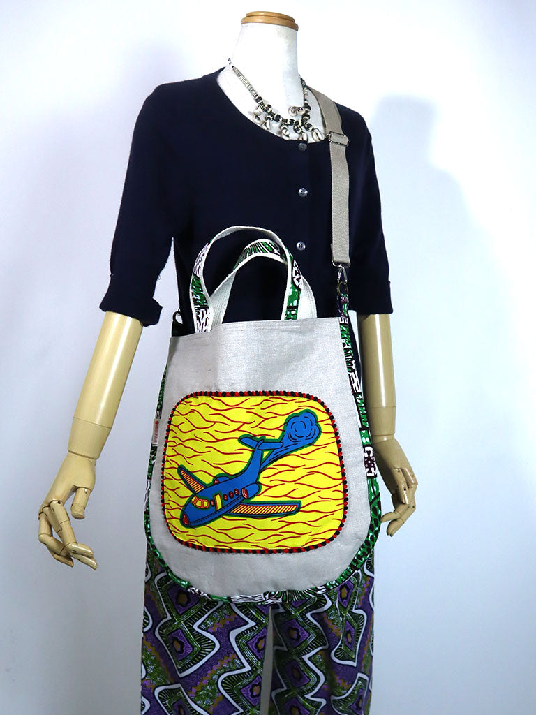 リネンの2wayトートバッグ・イエロー×ブルーエアプレーン