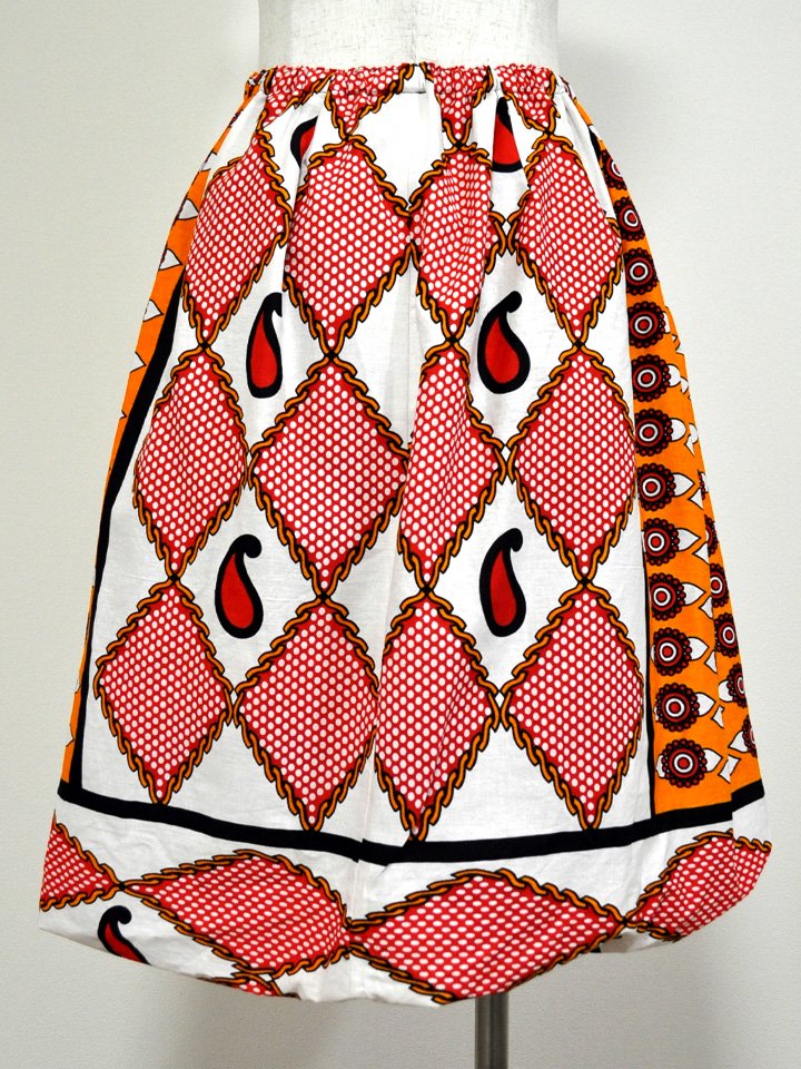 カンガのバルーンスカート・オレンジ×レッドフラワー