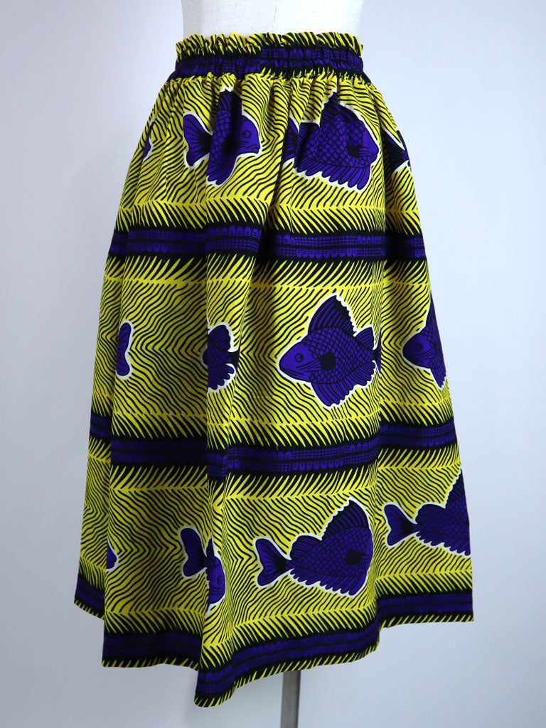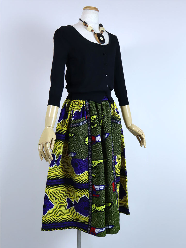 ポケット付きフォークロア・ロングスカート・エビとサカナ