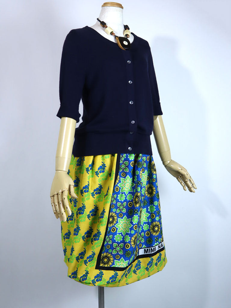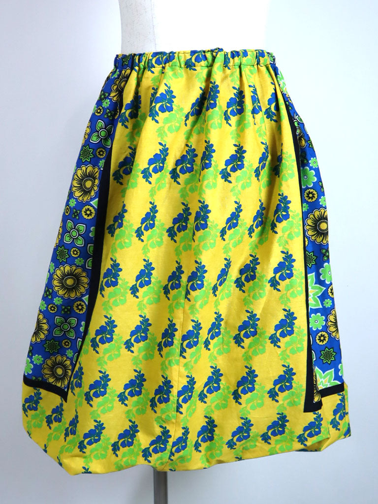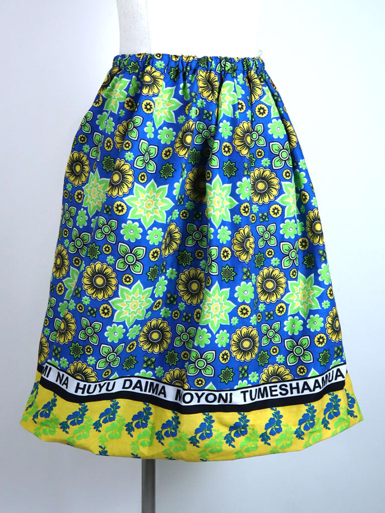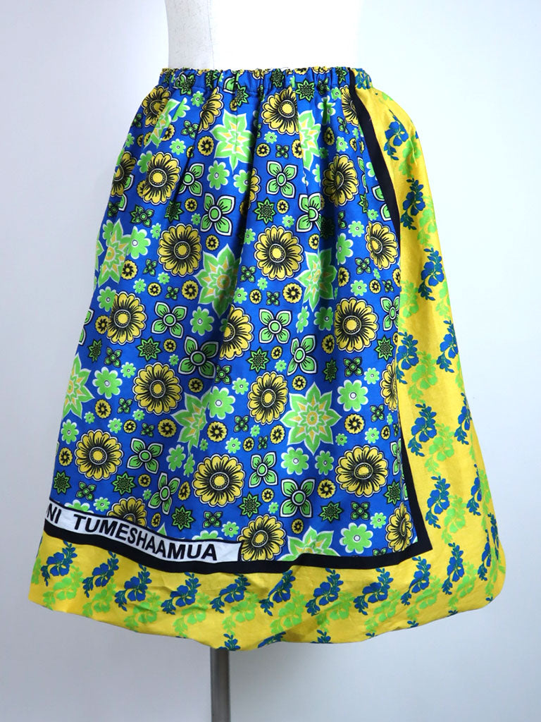 カンガのバルーンスカート・ブルー×イエローフラワー