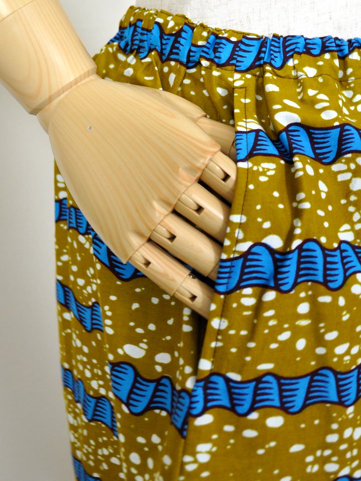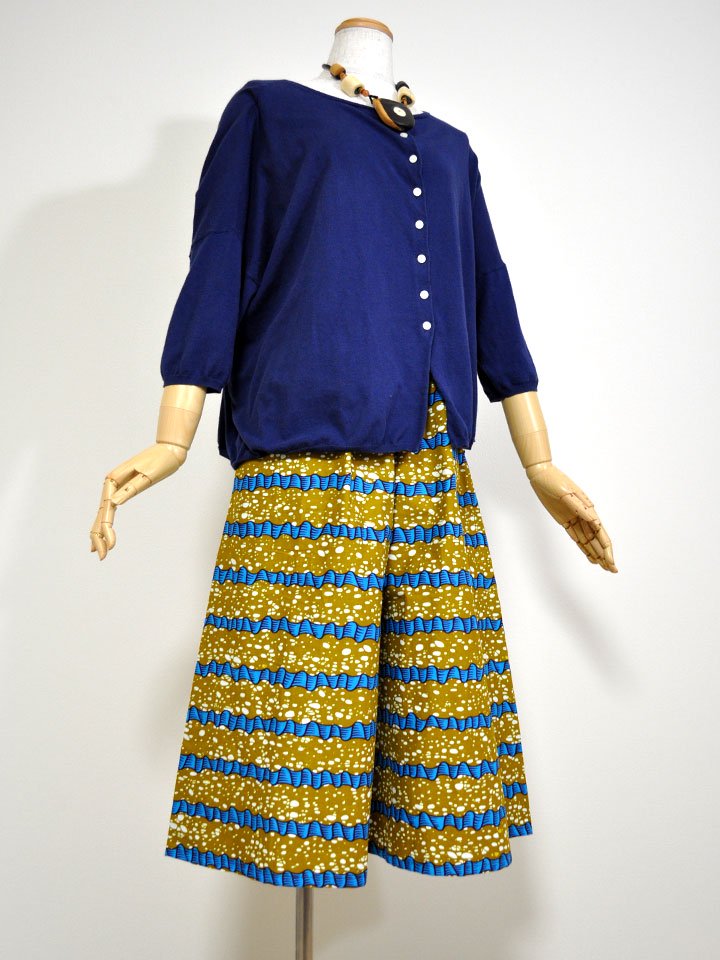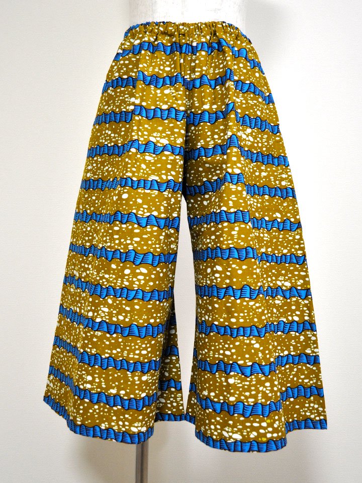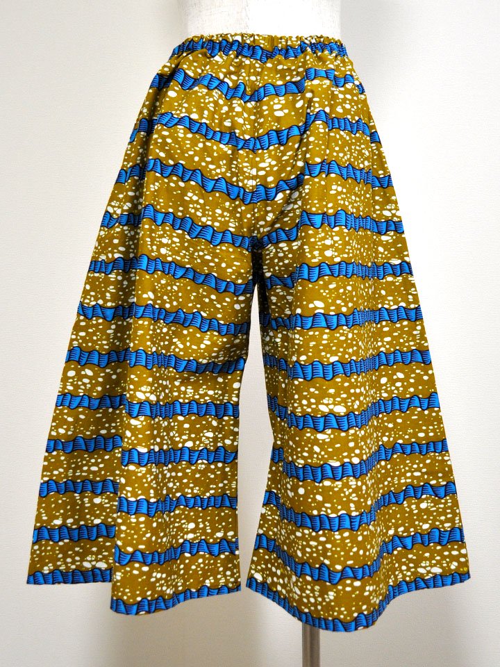 ゆったりとしていて動きやすい、アフリカンプリントでつくった「ガウチョパンツ」です。