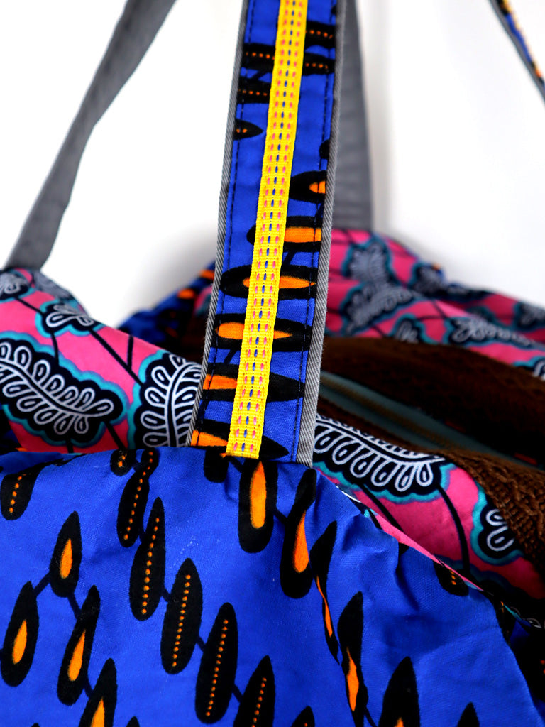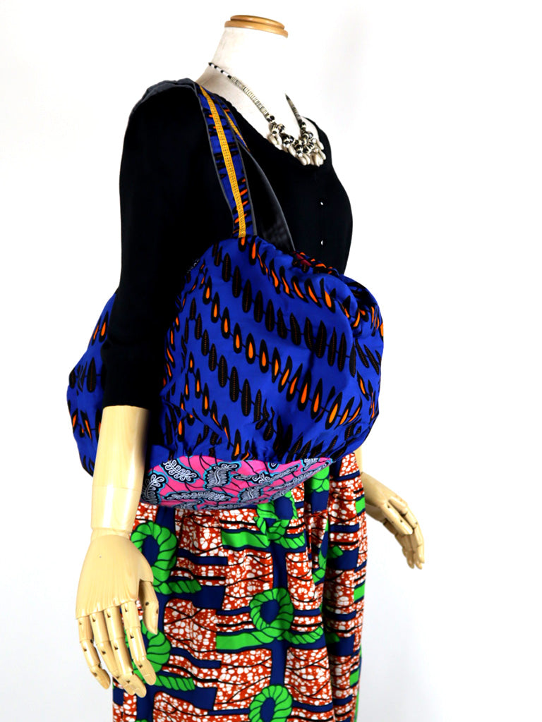 【サイズ】ファスナー口 30cm/ H 28cm / W 30cm + ギャザー分約10cm / もち手 53cm / 裏ポケット H 18cm、W 18cm