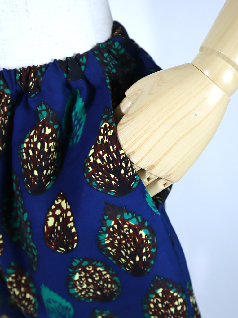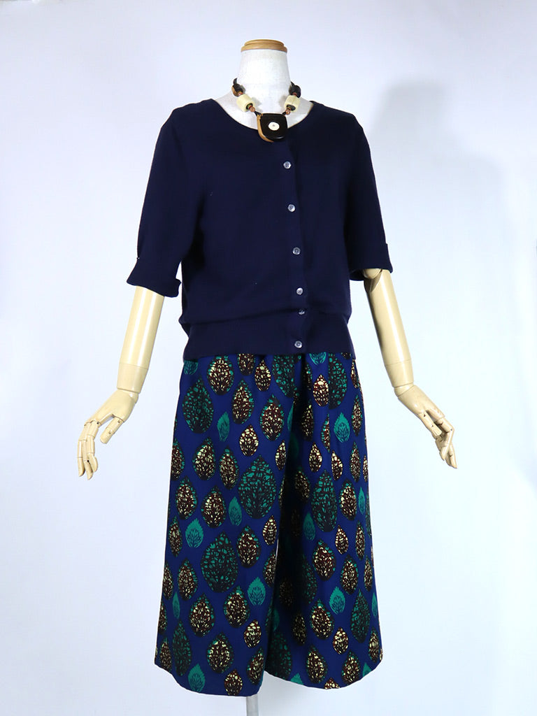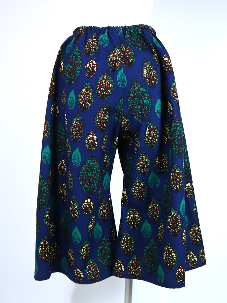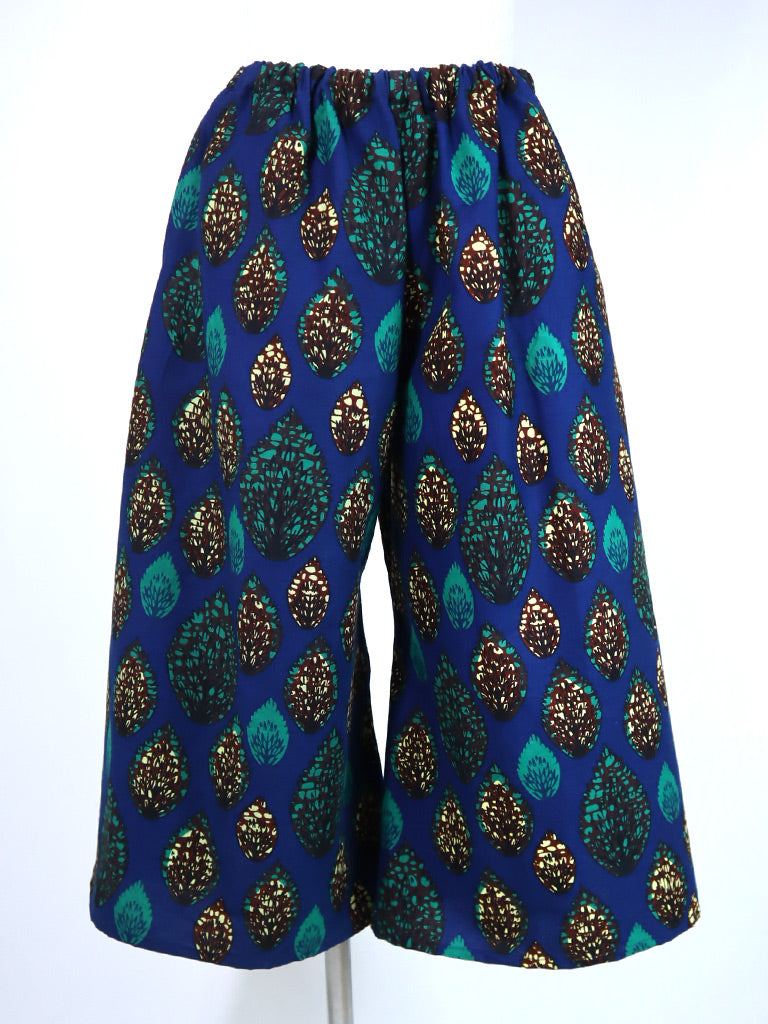 ゆったりとしていて動きやすい、アフリカンプリントでつくった「ガウチョパンツ」です。