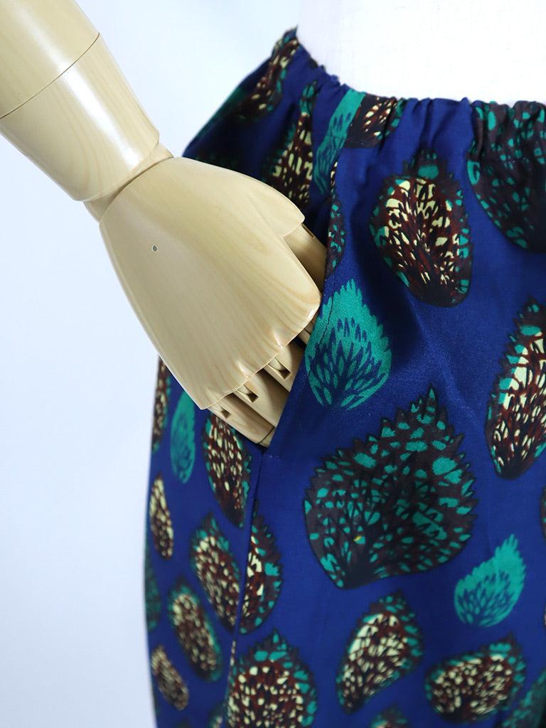 ポケット付きガウチョパンツ/ブルー×ターコイズリーフ