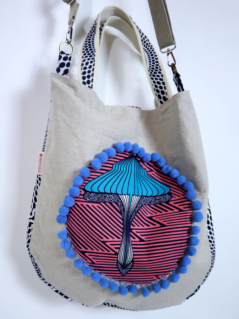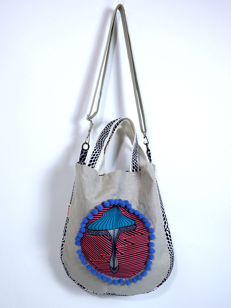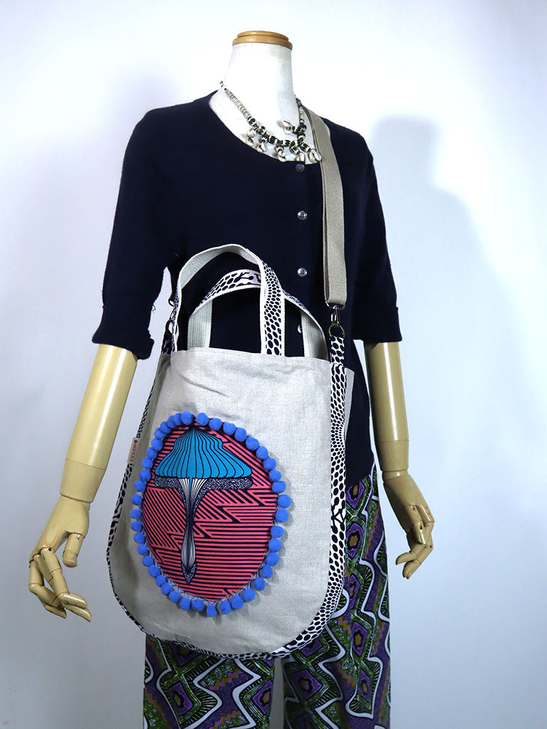 リネンの2wayトートバッグ・ブルーマッシュルーム