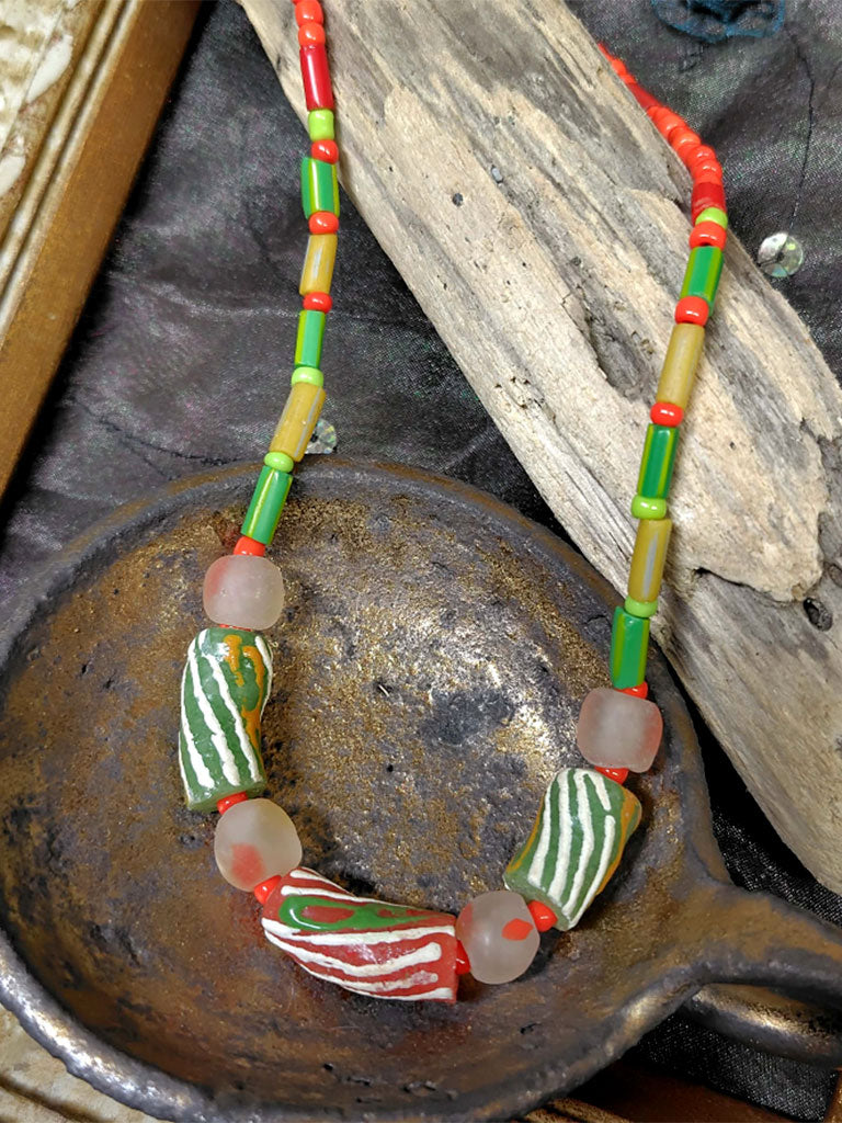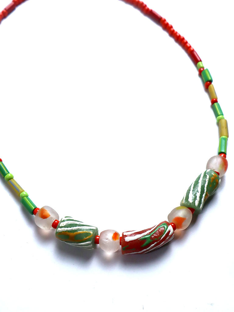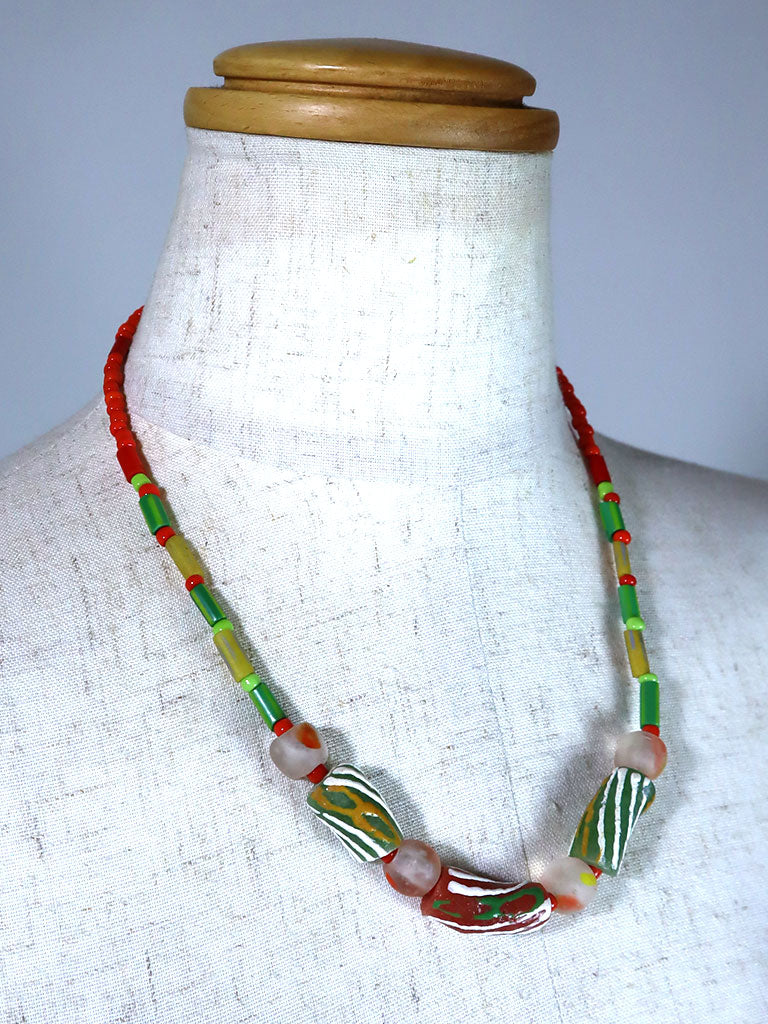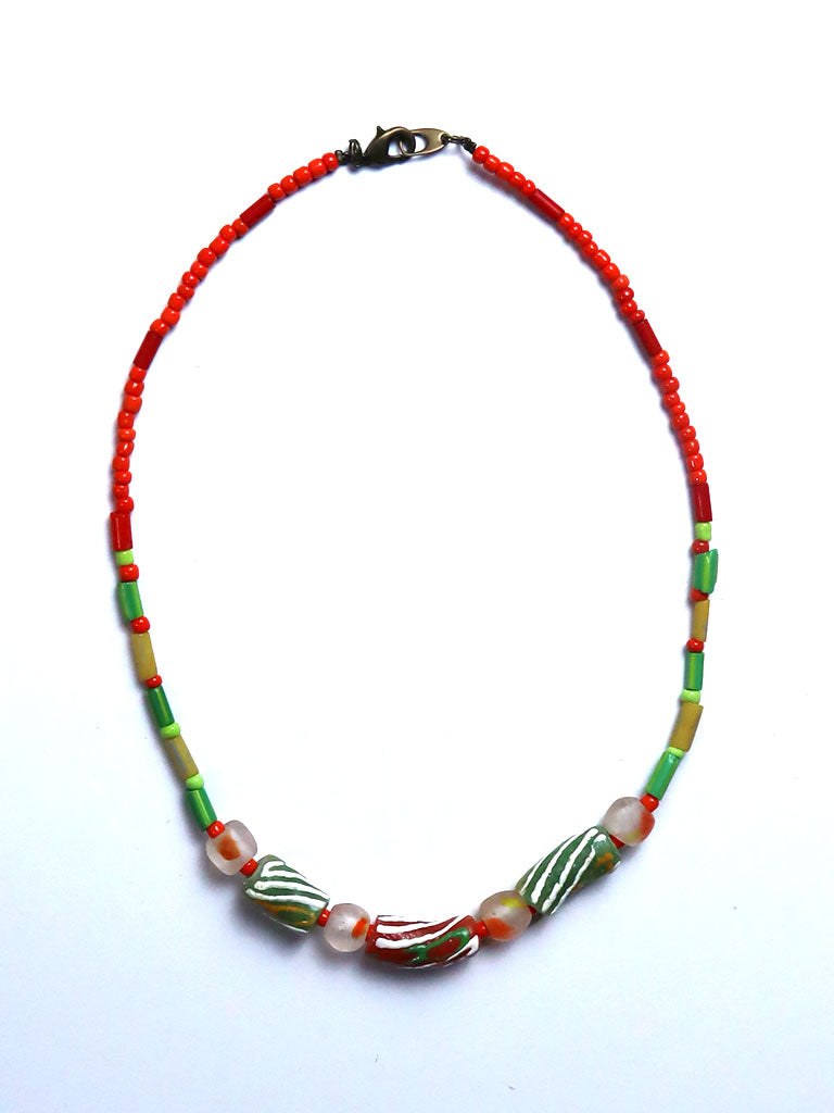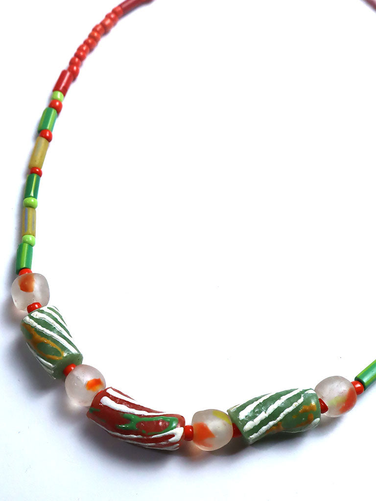 西アフリカのガーナ伝統の再生(リサイクル)ガラスビーズを使用した、梅田洋品店オリジナルのネックレスです。