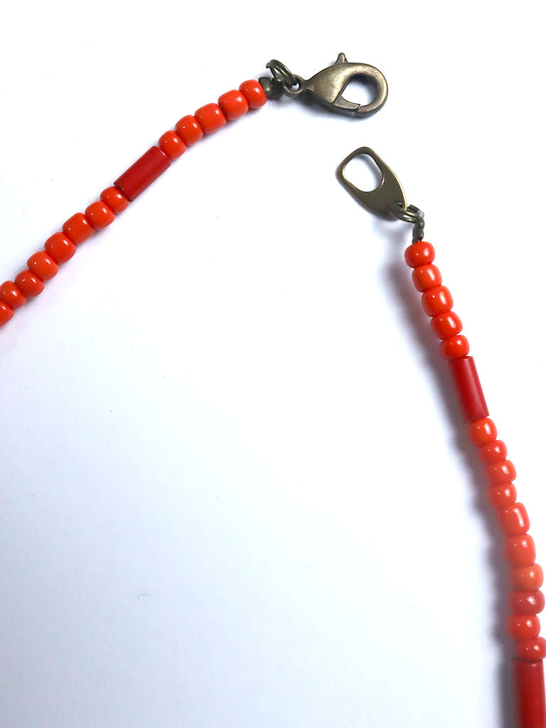 素材:再生ガラスビーズ(ガーナ製)、ガラスビーズ、真鍮、ステンレスワイヤー