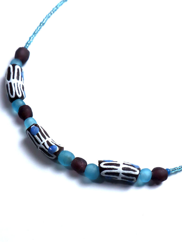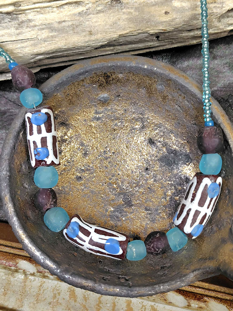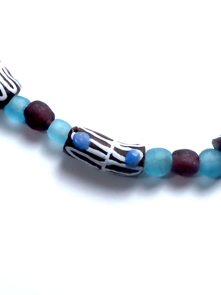 西アフリカのガーナ伝統の再生(リサイクル)ガラスビーズを使用した、梅田洋品店オリジナルのネックレスです。