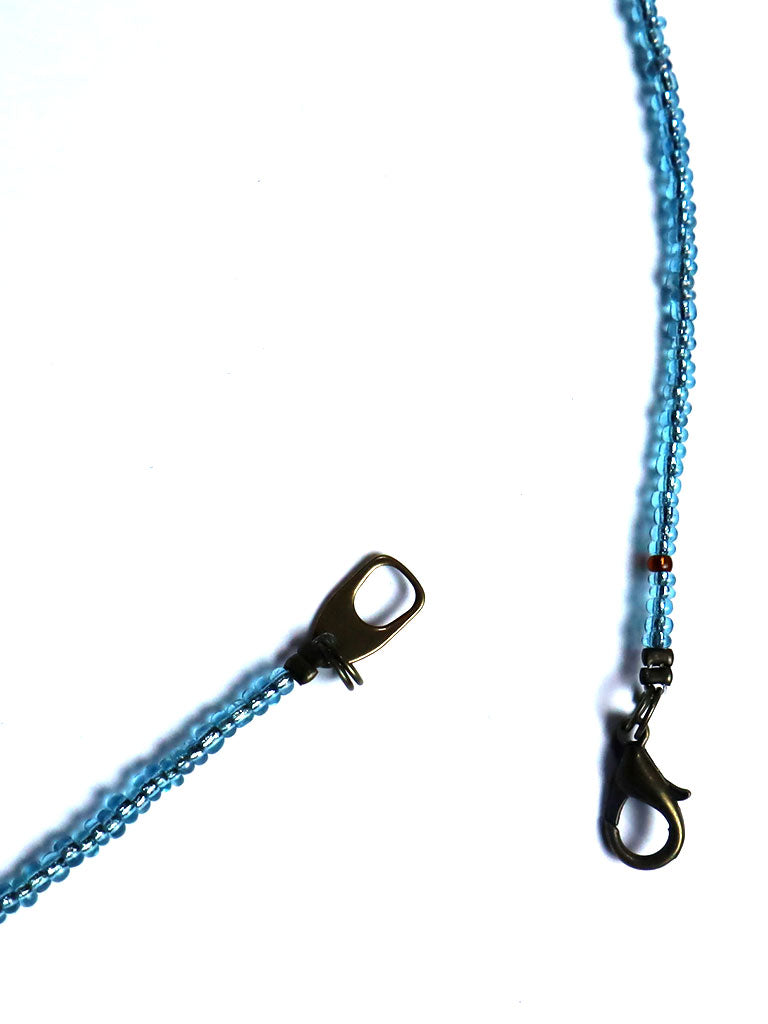素材:再生ガラスビーズ(ガーナ製)、ガラスビーズ、真鍮、ステンレスワイヤー