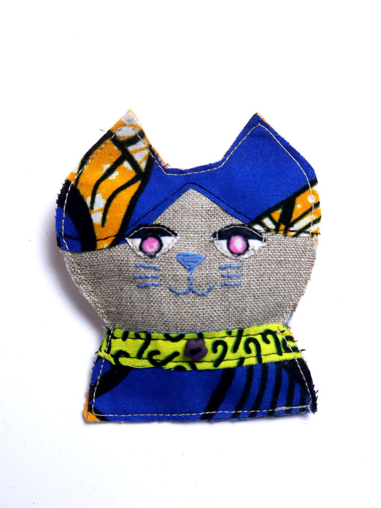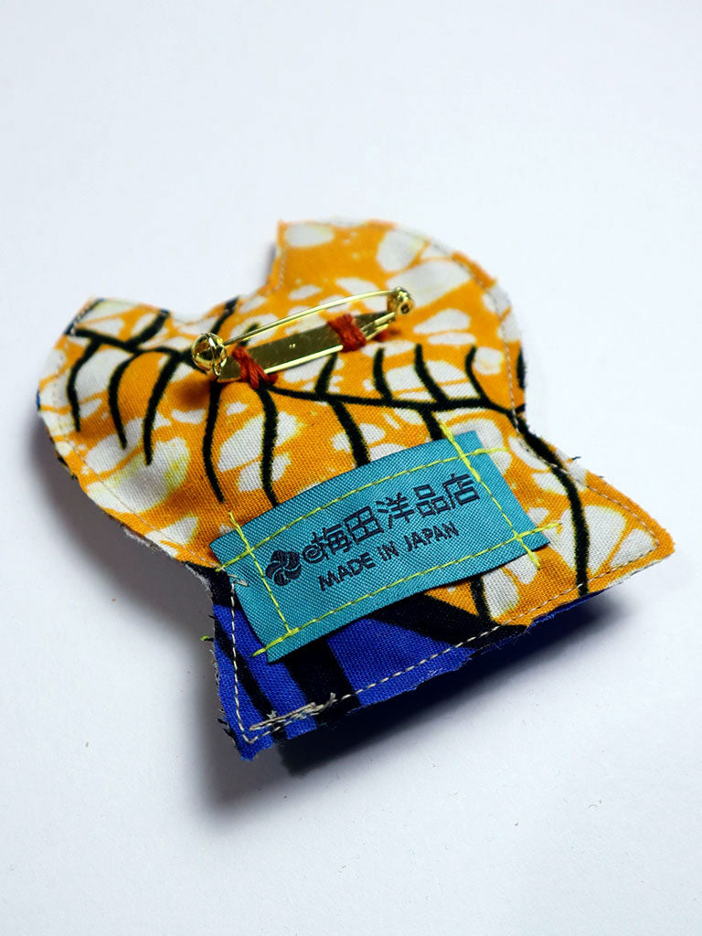 服やバッグの縫製過程で出る余り布(はぎれ)を使用、一点品のカラフルなアップサイクルのブローチです。