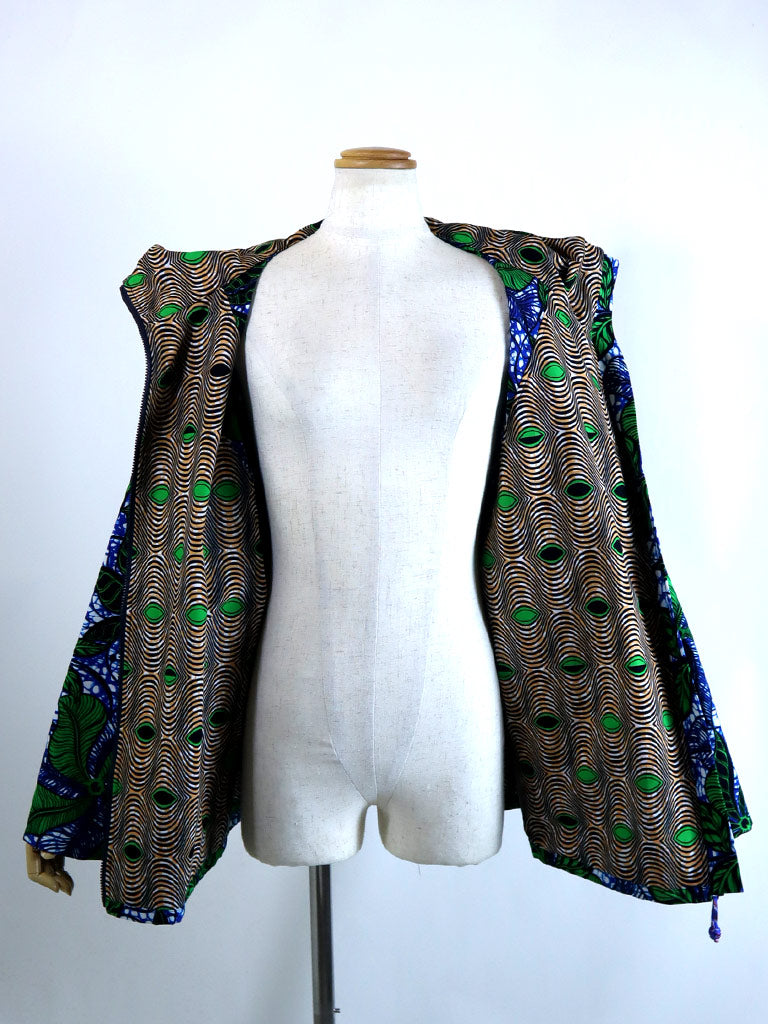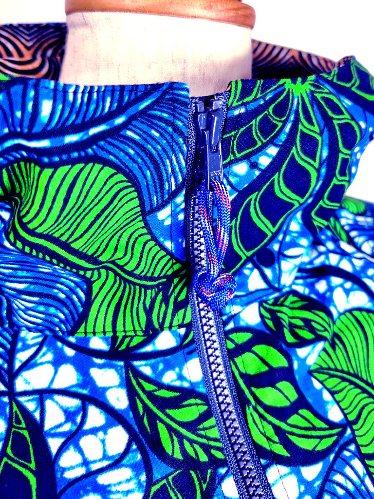 アフリカンプリントでジップアップパーカーを作りました。