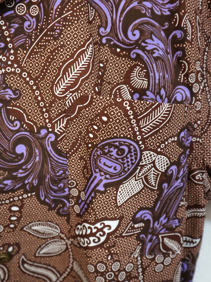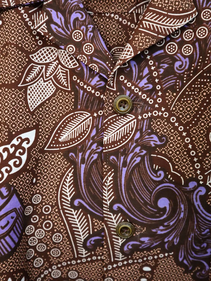 半袖シャツ・ブラウン×ボタニカル&キー Lサイズ